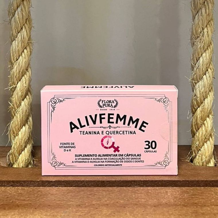 Descrição do Produto: AlivFemme da Flora Pura é um suplemento desenvolvido especialmente para apoiar a saúde feminina, combinando ingredientes como extrato de semente de uva, L-teanina, quercetina, vitamina K2 e colecalciferol (vitamina D). Com ação antioxidante, anti-inflamatória e relaxante, AlivFemme ajuda a promover o bem-estar geral, reduzindo o estresse e apoiando a saúde cardiovascular e óssea.