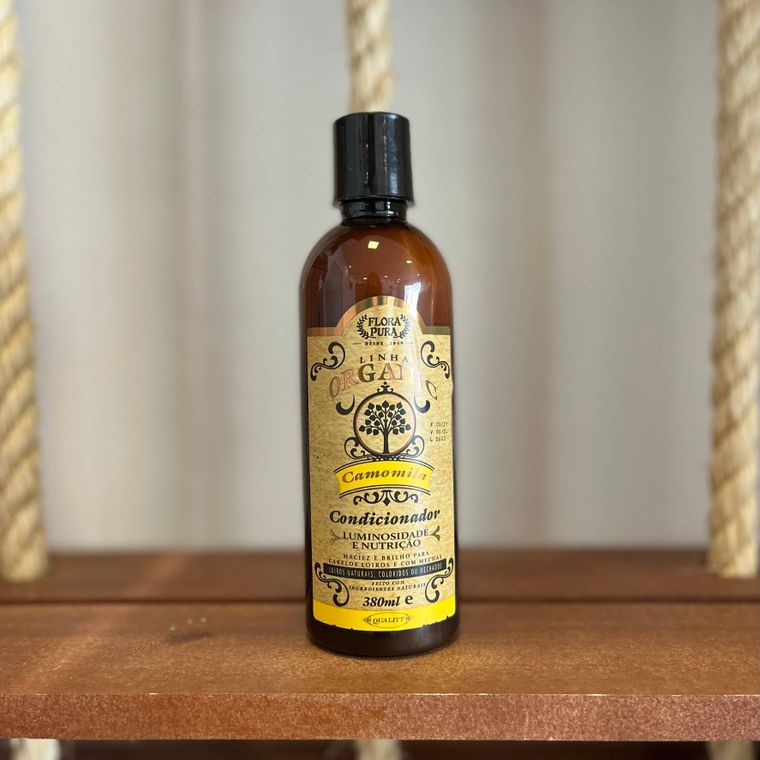 O Condicionador Camomila Organic Flora Pura é formulado com o extrato de camomila e o óleo de alecrim. O extrato de camomila é um poderoso clareador natural, proporciona brilho, reduz a oleosidade excessiva por sua ação adstringente e hidratante dos fios. Por sua vez o óleo de alecrim previne a queda dos cabelos, forralecendo-os proporcionando um crescimento rápido e saudável reduzindo também o frizz.