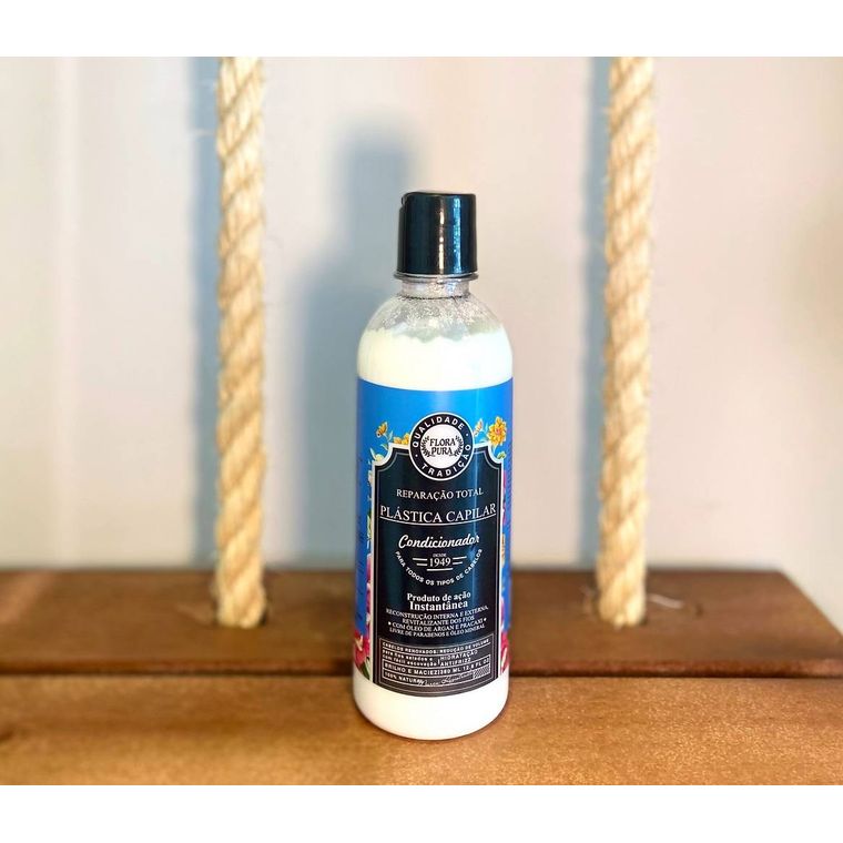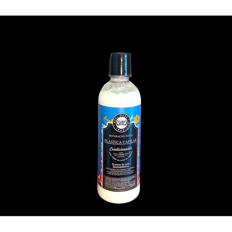 O Condicionador Plástica Capilar Flora Pura promove uma hidratação e reconstrução dos fios. Reduz o frizz, a quebra e oferece proteção térmica. Recupera a fibra capilar por meio de uma reconstrução interna e externa, selando os fios e reduzindo gradativamente o volume, dando brilho, maciez e condicionamento. Além disso, proporciona leveza e unificação dos fios, é um poderoso ativador térmico e formador de filme que protege, por exemplo, do calor do secador e da chapinha. Traz como resultados cabelos protegidos, com redução de pontas duplas, macios, fáceis de pentear e com brilho impecável. Os benefícios prometidos são observado a partir da primeira aplicação. Indicado para todos os tipos de cabelo.