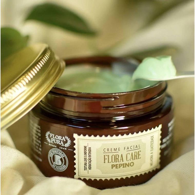 O Creme Facial de Pepino da Flora Pura proporciona uma hidratação intensa sem deixar sensação oleosa na pele. Permite o fechamento dos poros e melhora a aparência da pele amenizando as linhas de expressão. Indicado para peles que desejam efeitos regeneradores, antioxidantes, cicatrizantes e hidratantes. Um produto natural flora pura indicado para todos os tipos de pele, especialmente as maduras.