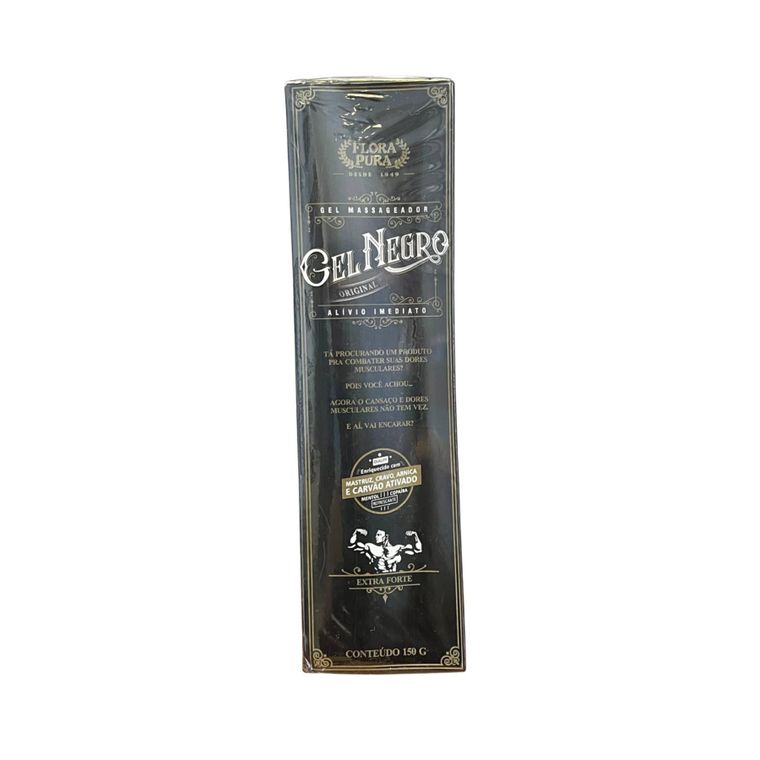 O Gel Negro possui em sua composição, carvão ativado. extrato de mastruz, óleo de eucalipto, óleo de copaíba, extrato de arnica e óleo de cravo aliado aos componentes salicilato de metila e mento, proporcionando alívio rápido. Promove também um frescor na região aplicada.