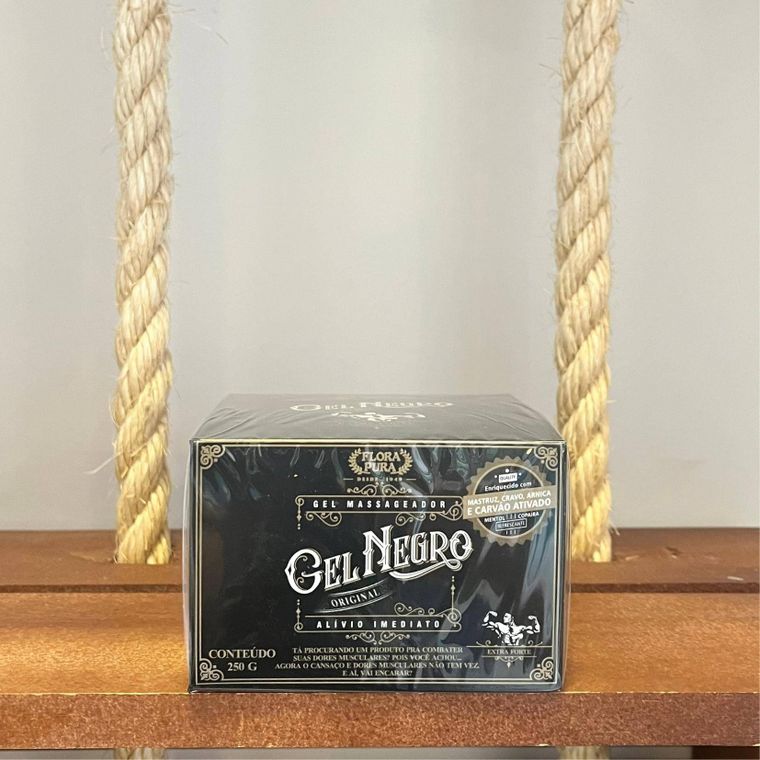 O Gel Negro Flora Pura possui em sua composição carvão ativado, extrato de mastruz, óleo de eucalipto, óleo de copaíba, extrato de arnica e óleo de carvão, que aliados aos componentes salicilato de metila e mentol, proporcionam o alívio rápido da dor.
