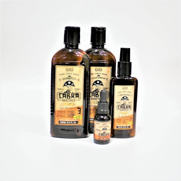 Kit Capilar Cabra Arretado Flora Pura é tratamento exclusivo e completo para os cuidados com o homem para a barba, cabelo e bigode. A linha fortalece os fios estimulando o crescimento rápido, reduz o frizz, hidrata, dá mais brilho e refrescância. Além disso, o kit flora pura promete um cabelo livre da oleosidade, evita cortes ao barbear, bem como proporciona cabelos e barba macios, tudo isso de forma natural e eficaz. Por fim, a deo colônia presente no kit dá um toque perfumado incrível ao corpo.