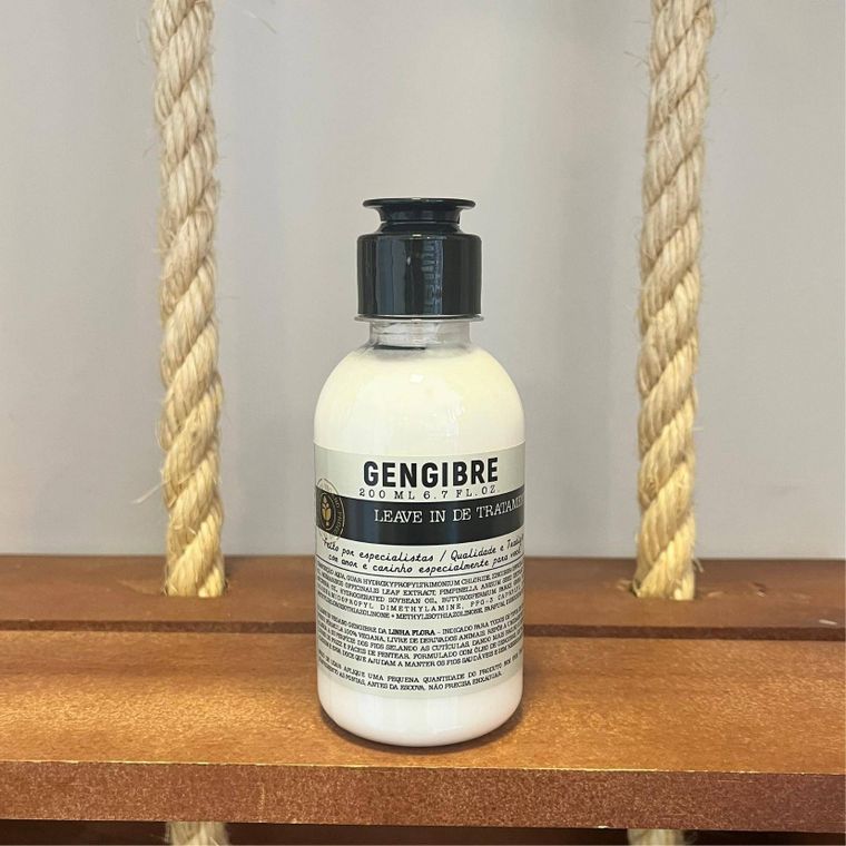 Leave in de Tratamento Vegano Gengibre: Indicado para todos os cabelos possui fórmula 100% Vegana, livre de derivados animais repõe a umidade natural alinha a superfície dos fios selando as cutículas dando mais brilho e definição livres do frizz e fáceis de penetrar, formulado com óleo de gengibre extratos de alecrim e erva-doce que ajudam a manter os fios saudáveis e sem ressecamento.