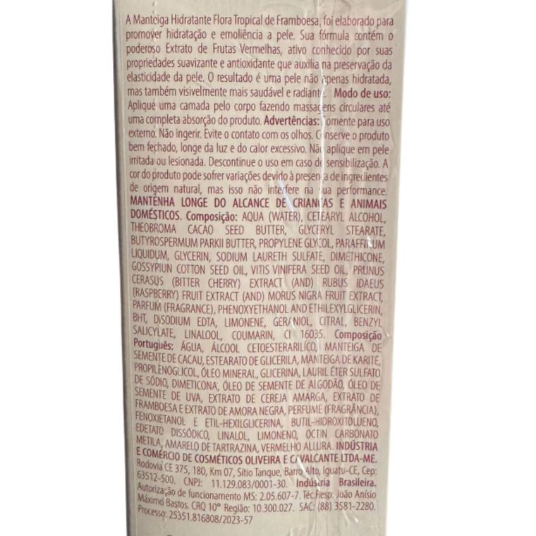 A Manteiga Hidratante Flora Tropical de Framboesa foi desenvolvida para proporcionar hidratação profunda e emoliência à pele, unindo nutrição com um toque sofisticado de fragrância frutal. Enriquecida com Extrato de Frutas Vermelhas, reconhecidas por suas propriedades antioxidantes, essa fórmula exclusiva ajuda a combater os radicais livres, preserva a elasticidade natural da pele e auxilia na manutenção de uma aparência mais jovem e saudável.