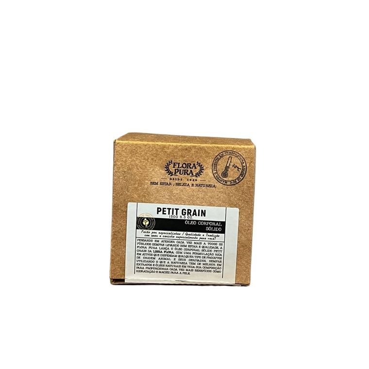 O Óleo Corporal Sólido de Petit Grain da Flora Pura é rico em óleos vegetais nobres como o óleo de girassol e semente de uva, manteiga de karité e vitamina E. Não é testado em animais (cruelty free). Com embalagem feita em papel 100% reciclado, ecológico, biodegradável e fórmula LIVRE de ingredientes de origem animal (vegano), parabenos, sulfatos, petrolatos, óleo mineral, silicones, corantes e outros componentes prejudiciais a saúde. Uma ótima opção para levar em viagens pela sua praticidade. Um produto natural exclusivo flora pura com alto poder de hidratação e recuperação das áreas mais ressecadas da pele (mãos, cotovelos, joelhos e calcanhar) promovendo uma sensação de maciez e bem estar, além de ter aroma super agradável. Rende várias aplicações.