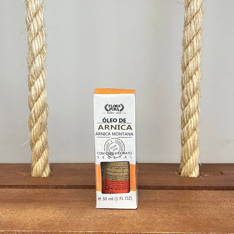 O óleo de arnica tem ações emoliente, estimulante, anti-inflamatória, anti-sética, analgésica.