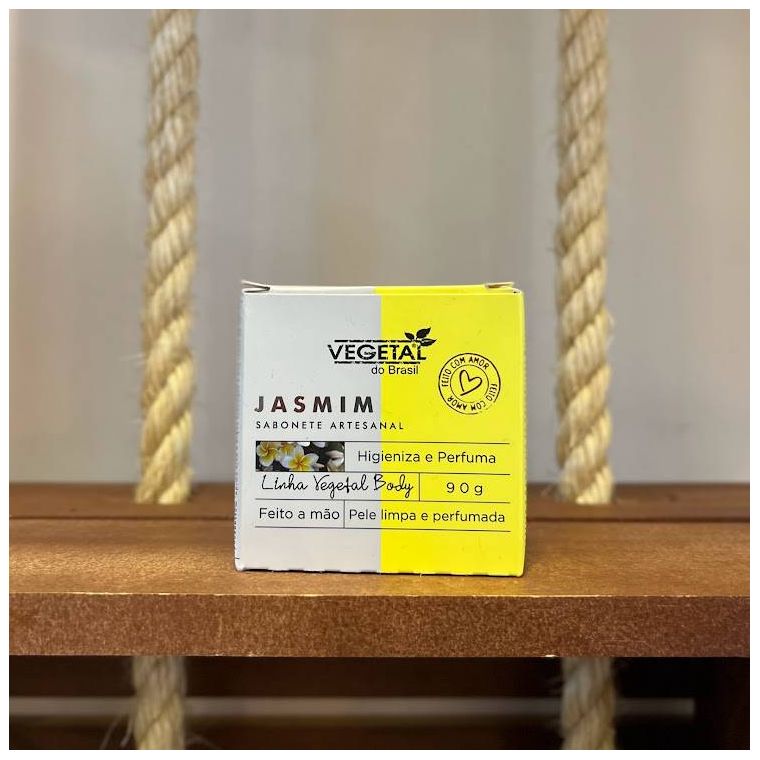 O Sabonete de Jasmim Vegetal do Brasil é produzido com óleos essenciais e extratos naturais que promovem uma profunda limpeza na pele. Higieniza enquanto hidrata, perfuma e amacia, prolongando a sensação de conforto e bem-estar após o banho. O jasmim é um excelente revigorante, calmante, rejuvenescedor e relaxante. Indicado para o tratamento de irritações e coceiras na pele. É indicado para ser usado por todo o corpo, pois perfuma de forma suave. Produto natural Vegetal do Brasil não testado em animais (cruelty free), com fórmula LIVRE de petrolatos, sulfatos e de ingredientes de origem animal (vegano).