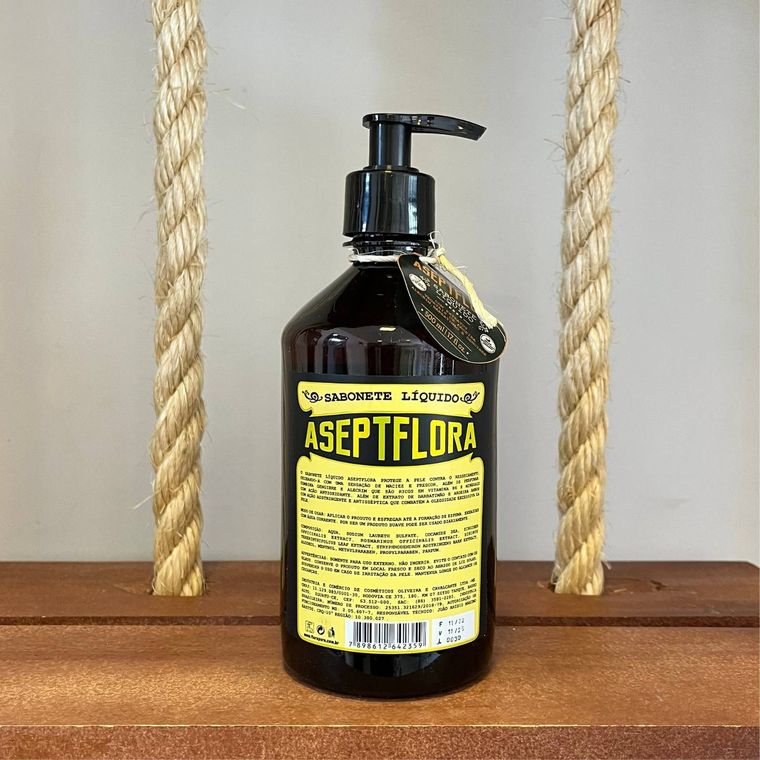 O sabonete liquido aseptflora protege a pele contra o ressecamento, deixando-a com uma sensação de maciez e frescura, além de perfumar.