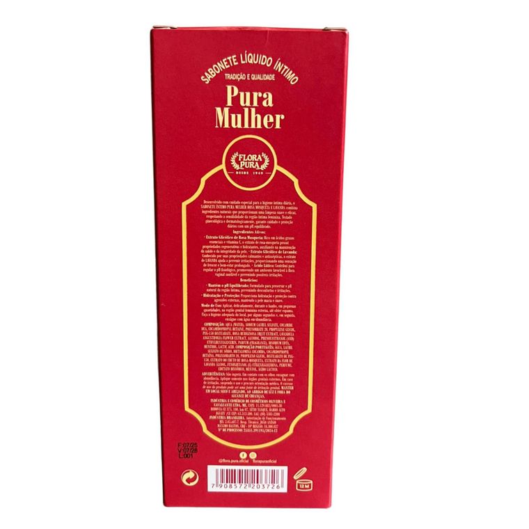 Desenvolvido com cuidado especial para a higiene íntima diária da mulher, o Sabonete Líquido Íntimo Pura Mulher Rosa Mosqueta e Lavanda combina suavidade, proteção e bem-estar. Sua fórmula exclusiva auxilia na manutenção do pH natural da região íntima, proporcionando uma sensação prolongada de frescor, conforto e segurança.