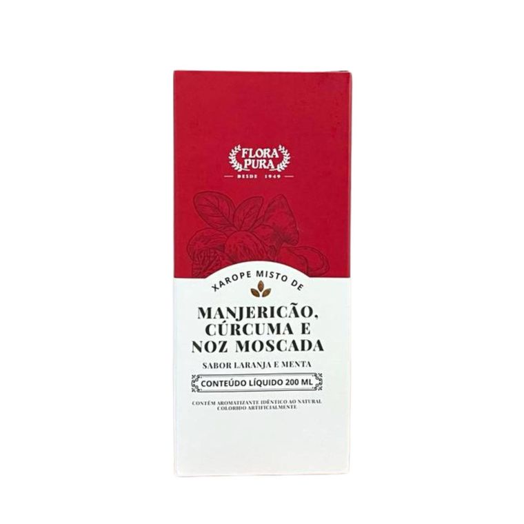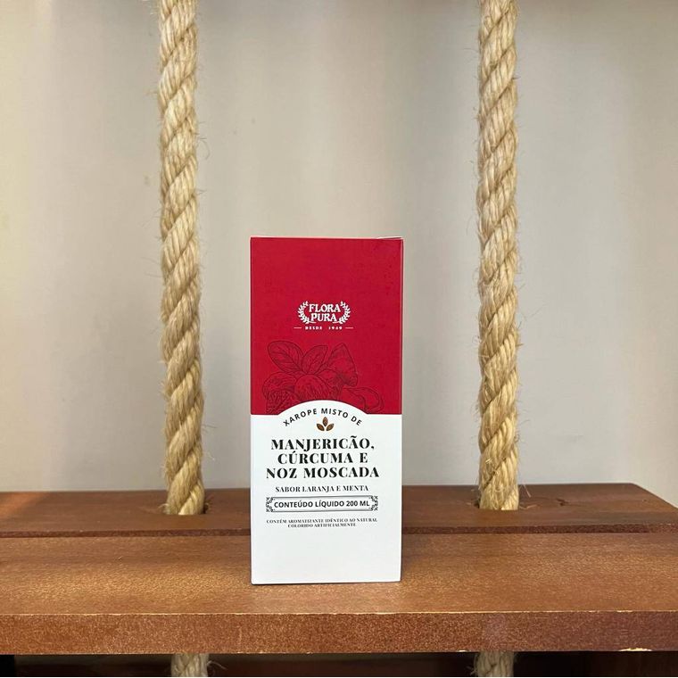 Xarope composto por Manjericão, Cúrcuma e Noz Moscada com um delicioso e refrescante sabor de Laranja e Menta.